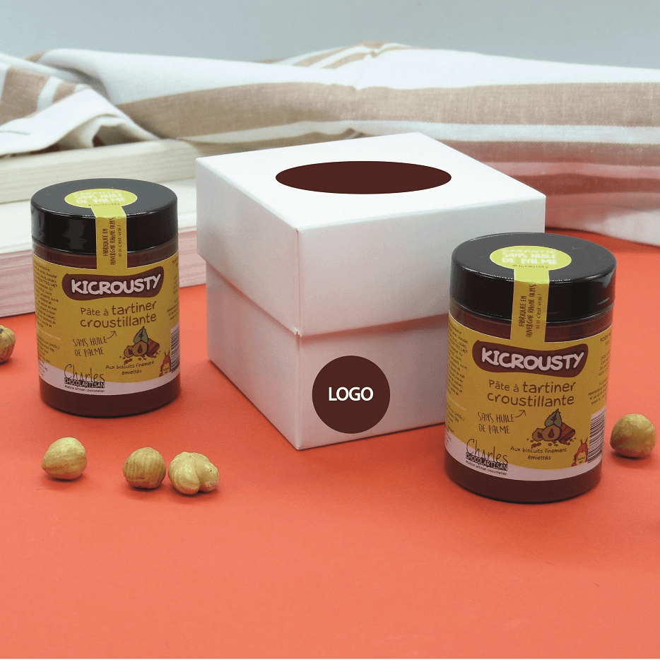 D'autres idées potentielles : le coffret cadeau 100%personnalisable contenant 2 pots de 110g de pâtes à tartiner